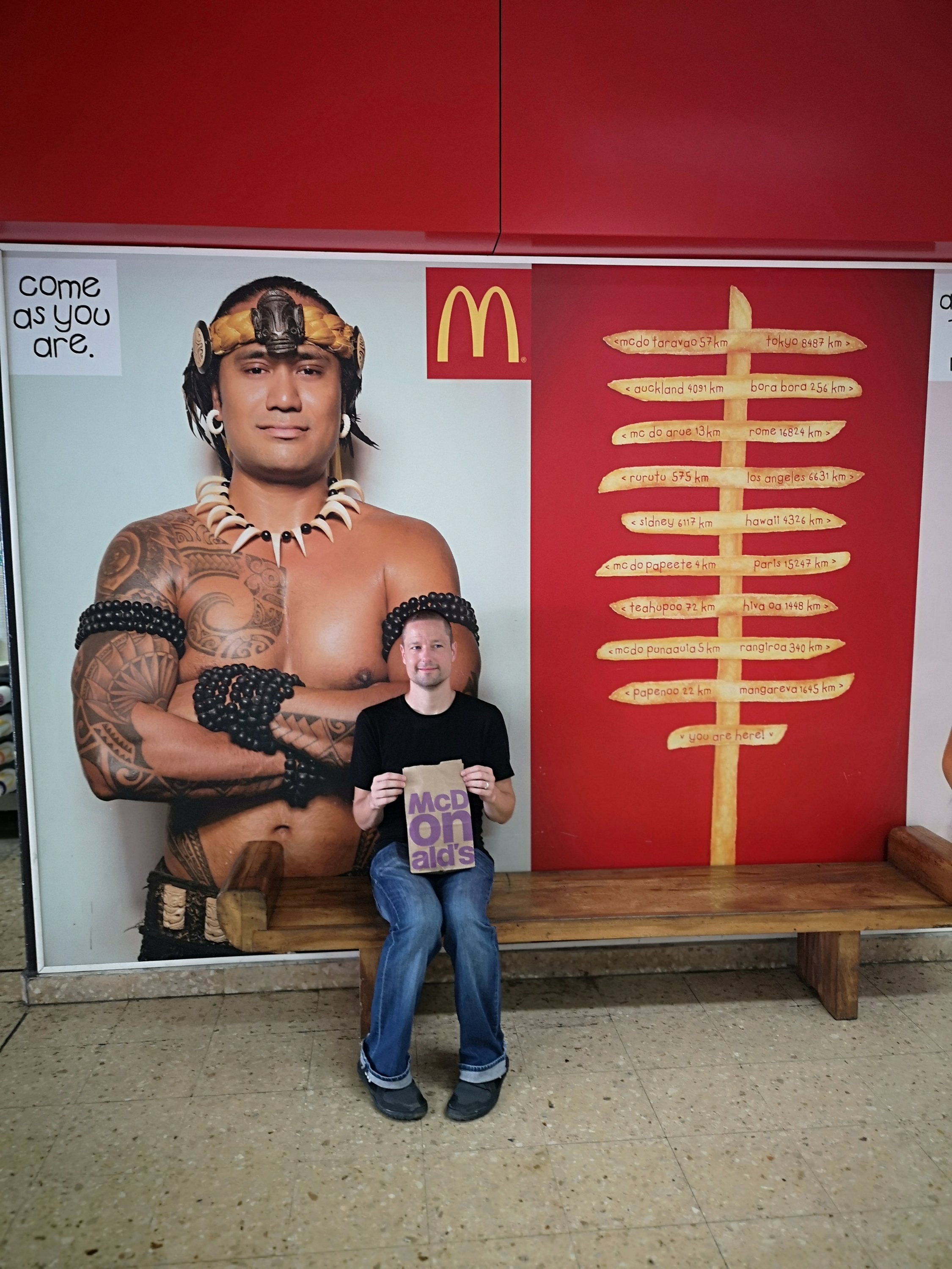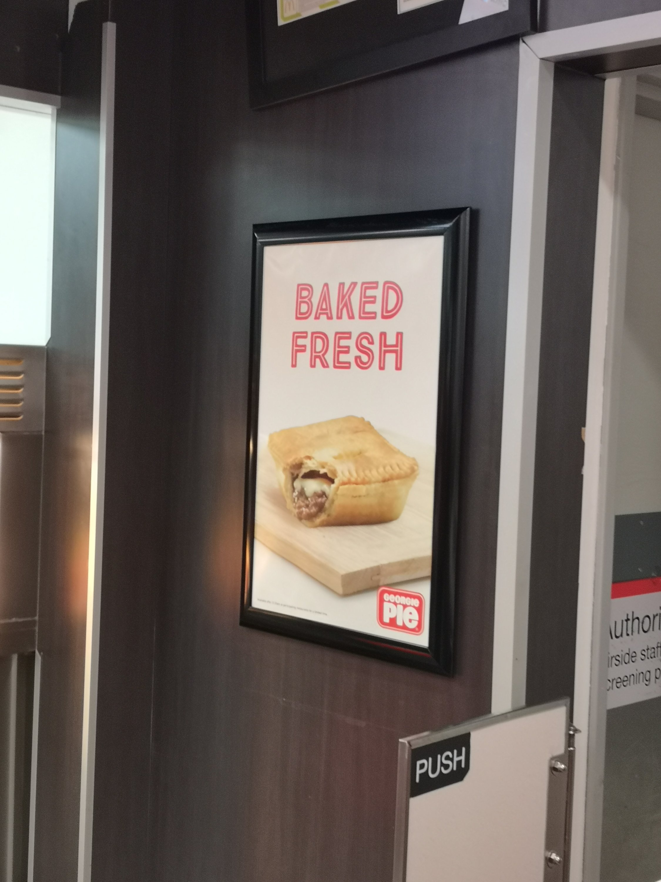 Wie am Vorabend besprochen, durften wir bis 11 Uhr auf dem Zimmer bleiben. Aufgrund des schlechten Wetters gönnten wir uns für zusammen 6 Euro den Shuttlebus zum Flughafen. Da wir nun viel zu früh am Flughafen waren, war der Check-in für unseren Flug noch nicht geöffnet. Also hieß es erst einmal Zeit vertreiben. Mit Gepäck haben wir uns die Zeit allerdings sitzend mit dem Smartphone vertrieben (immerhin gab es 2 Stunden kostenfreies WLan pro Gerät 😉). Als wir dann endlich unser Gepäck los waren, ging es, wie soll es anders sein, zu McDonald’s 😉. Denn wir hatten mal wieder das Frühstück im Hotel verpasst. Außerdem wurde uns am Vortag empfohlen, dass wir den Georgie Pie probieren sollten. Aber nun ratet mal, was an dem Tag aus war 🤔😂