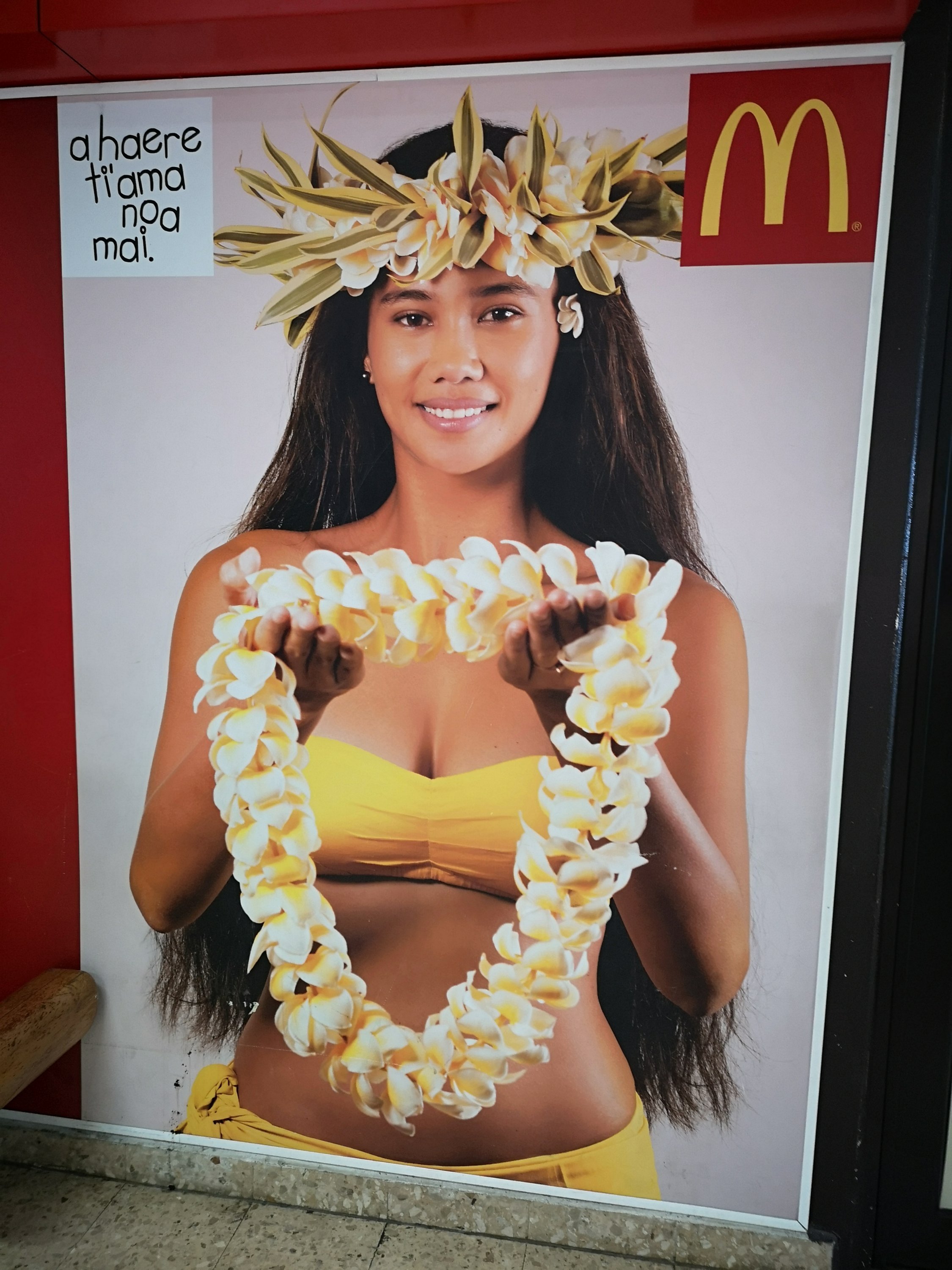 Geflogen sind wir mit Air Tahiti Nui in einem relativ alten A340-300. Es gab ein wenig Filmauswahl im Boardprogramm aber leider vieles davon auf französisch. Immerhin mussten wir aber „nur“ 5 Stunden fliegen. Viele der anderen Fluggäste mussten nach einem kurzen Zwischenstopp auf Tahiti noch weitere 8 Stunden nach Los Angeles in der Maschine fliegen.